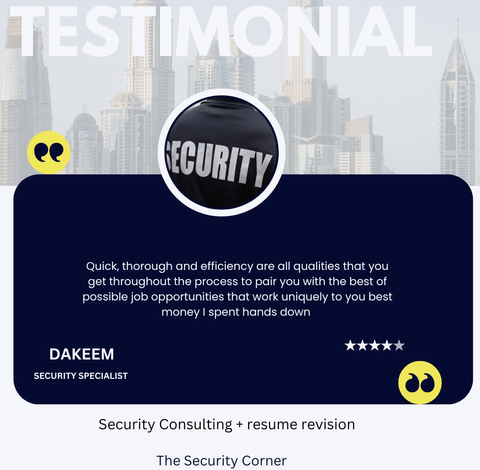 Ready to advance your career in corporate security?At Security Vault HQ, we offer personalized consulting to help you succeed. From career planning and resume reviews, to interview coaching and job search strategies, we provide the tools you need to achieve your professional goals.